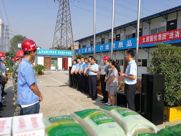 8月8日上午,慰問組一行深入東社、義井兩個項目施工現(xiàn)場,檢查安全生產(chǎn)、勞動保護(hù)和健康保障落實情況,為項目現(xiàn)場管理 人員和勞務(wù)工人送去防暑降溫和勞動保護(hù)用品,為一線職工傳遞集團(tuán)公司的關(guān)切之情。同時激發(fā)出職工戰(zhàn)高溫、保安全、促發(fā)展的激情和干勁,鼓舞一線職工以更加飽滿的熱情投入到項目施工中去。