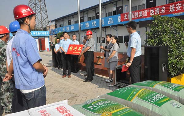 為切實維護(hù)高溫期間廣大基層職工的身體健康,改善職工的生產(chǎn)生活條件,提高職工的生產(chǎn)生活水平,切實保障職工的合法權(quán)益,市總工會決定在全市開展“情系職工 清涼一夏”慰問活動。集團(tuán)公司積極響應(yīng)市總工會的指示精神,開展“送清涼、送安全、送健康”主題慰問活動,由集團(tuán)公司黨委書記馮澤亭,紀(jì)委書記、工會副主席楊柳以及集團(tuán)公司工會各委員組成慰問組前往施工生產(chǎn)一線看望一線的員工和農(nóng)民工兄弟,關(guān)愛一線職工,助力項目生產(chǎn),督促安全質(zhì)量。