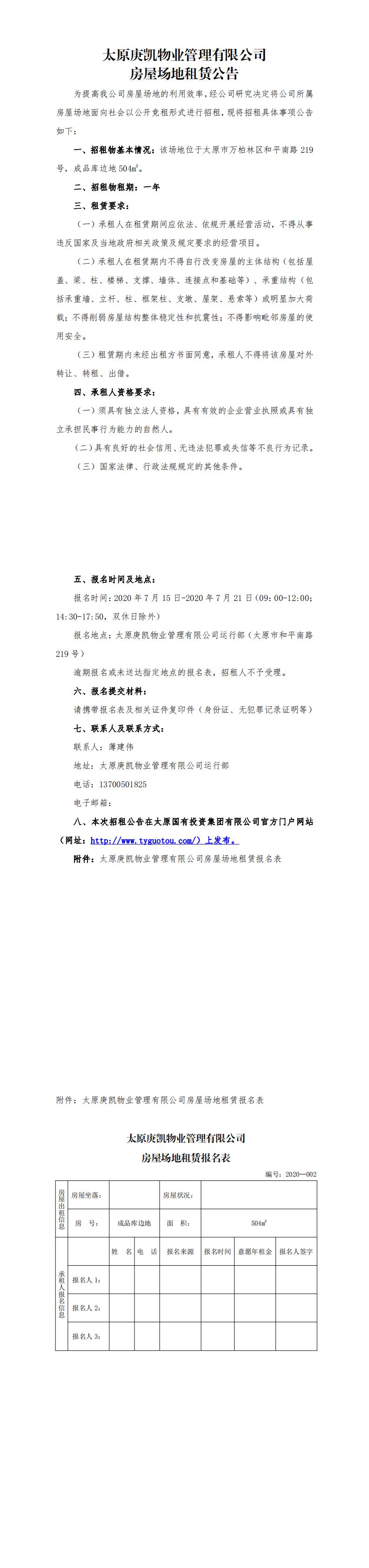 太原庚凱物業(yè)管理有限公司房屋場地租賃公告(二)