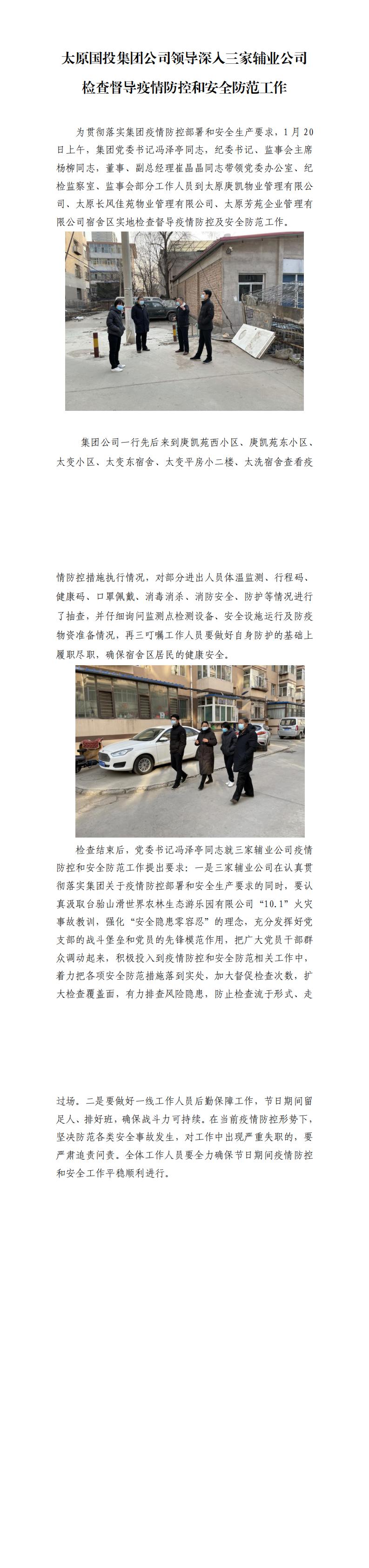 太原國(guó)投集團(tuán)公司領(lǐng)導(dǎo)深入三家輔業(yè)公司檢查督導(dǎo)疫情防控和安全防范工作