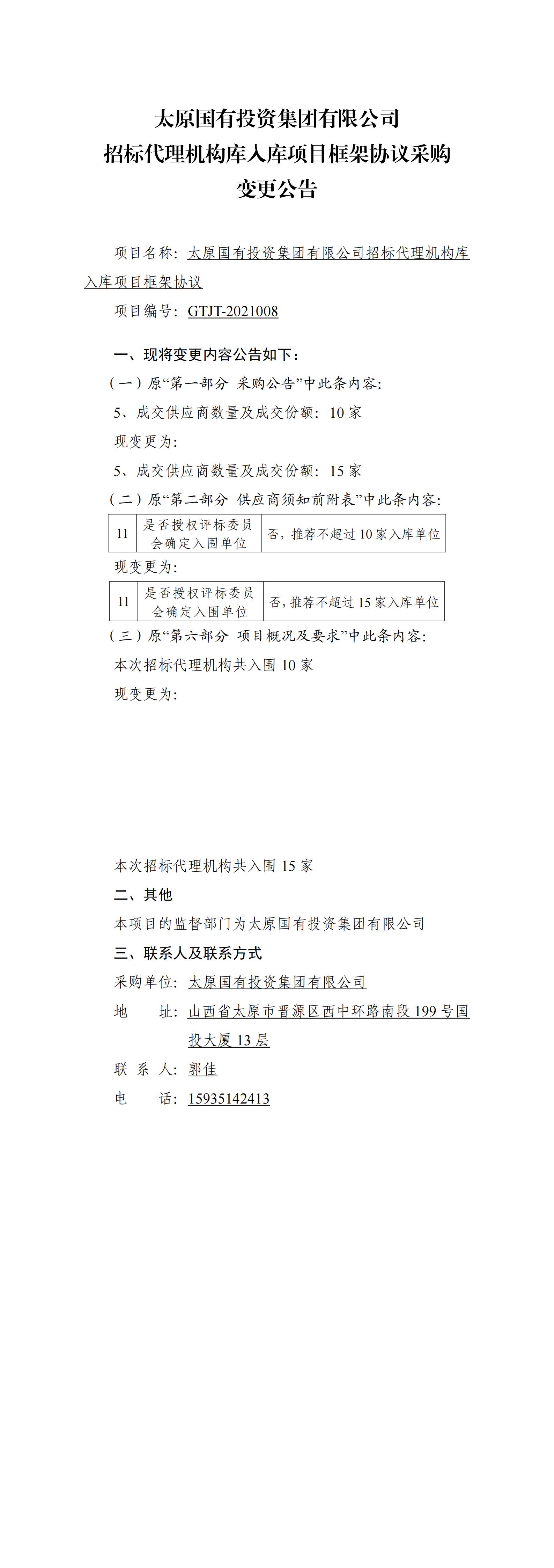 太原國(guó)有投資集團(tuán)有限公司招標(biāo)代理機(jī)構(gòu)庫(kù)入庫(kù)項(xiàng)目框架協(xié)議采購(gòu)變更公告