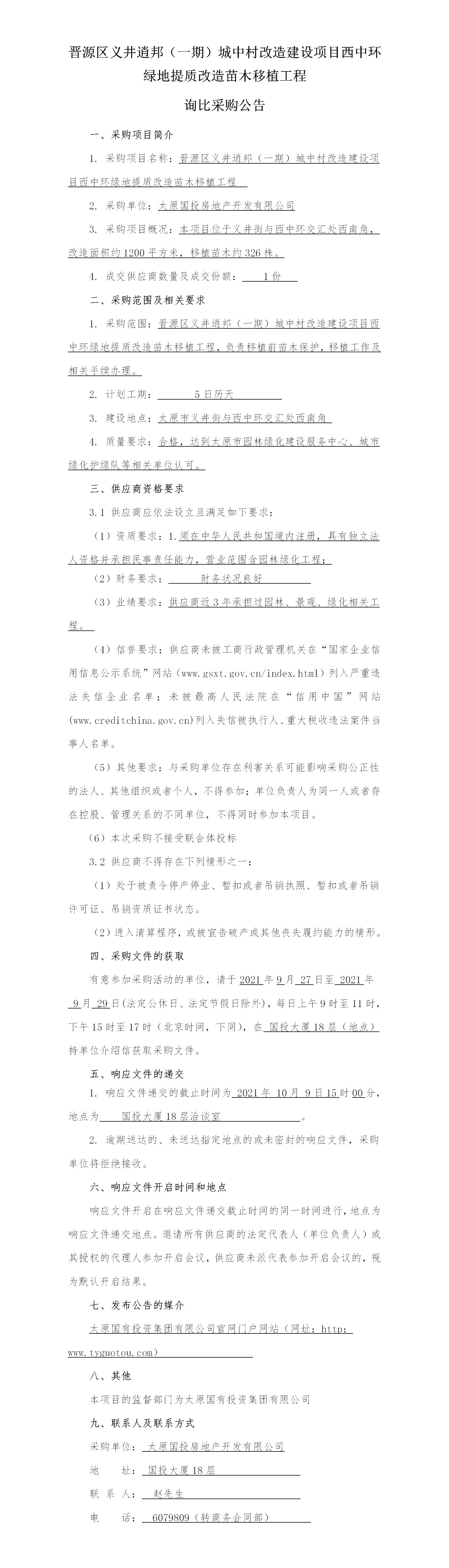 晉源區(qū)義井逍邦(一期)城中村改造建設(shè)項目西中環(huán)綠地提質(zhì)改造苗木移植工程詢比采購公告
