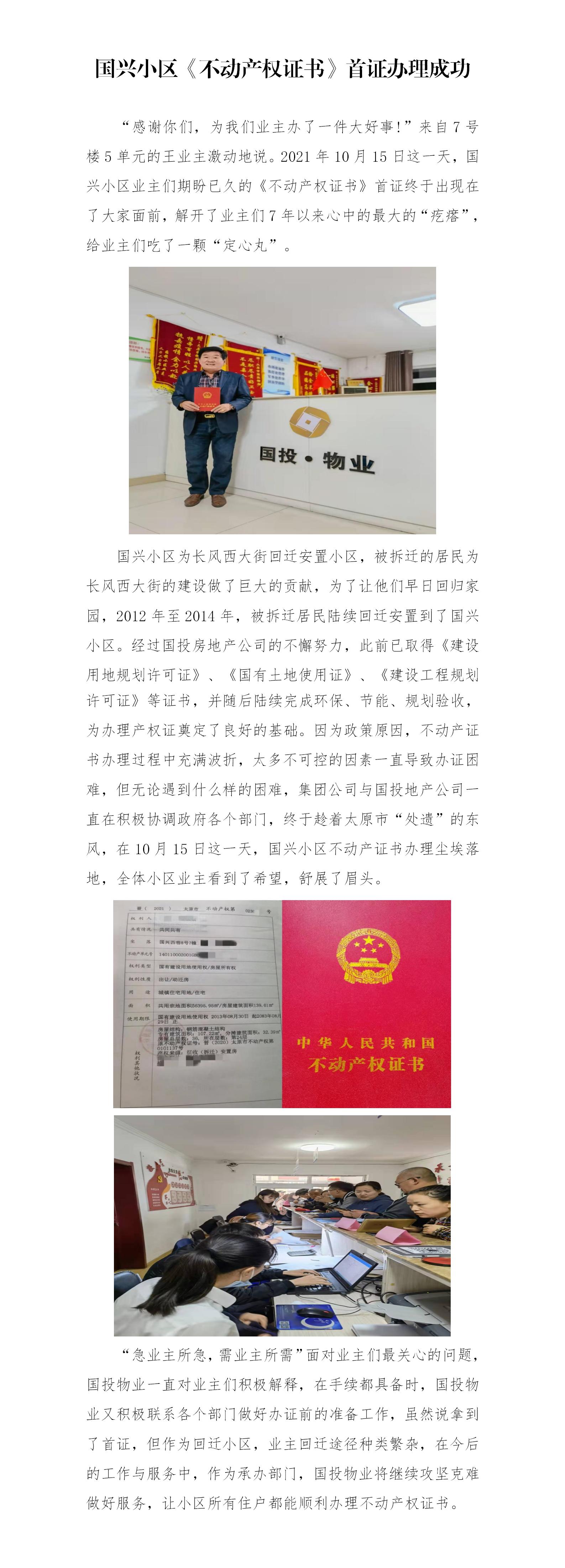 國(guó)興小區(qū)不動(dòng)產(chǎn)權(quán)證書首證辦理成功