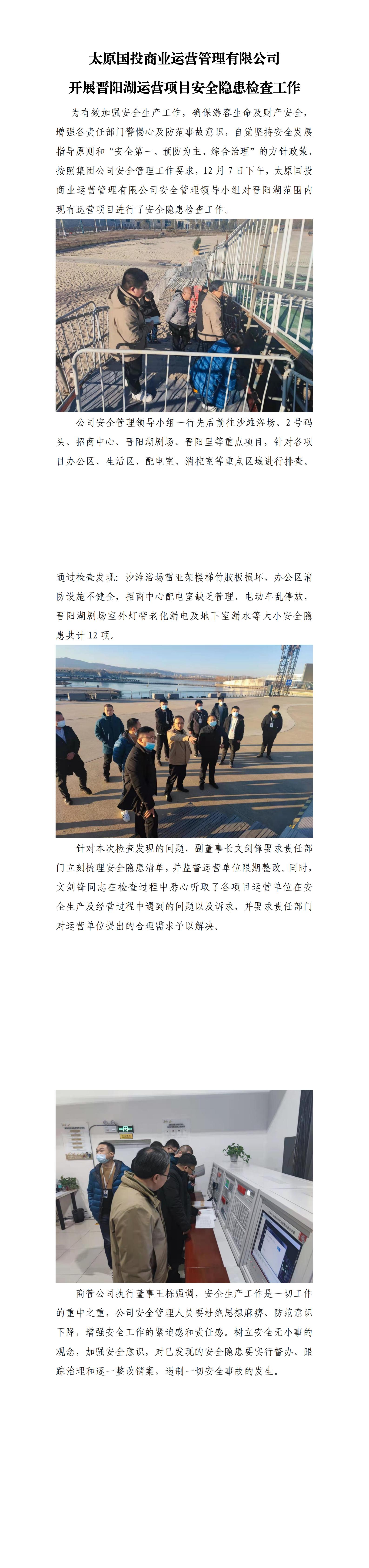 太原國投商業(yè)運營管理有限公司開展晉陽湖運營項目安全隱患檢查工作