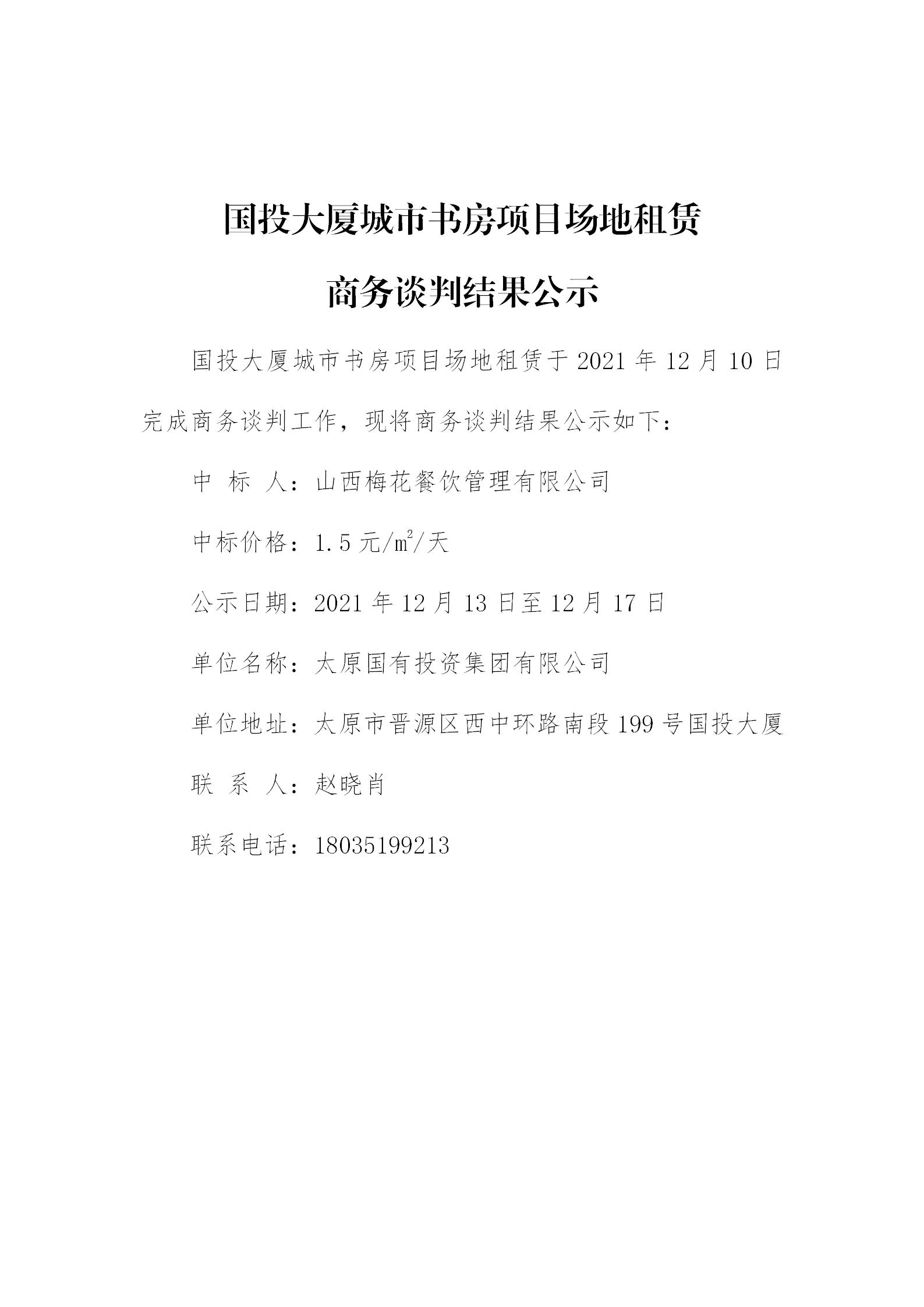 國投大廈城市書房項目場地租賃商務(wù)談判結(jié)果公示