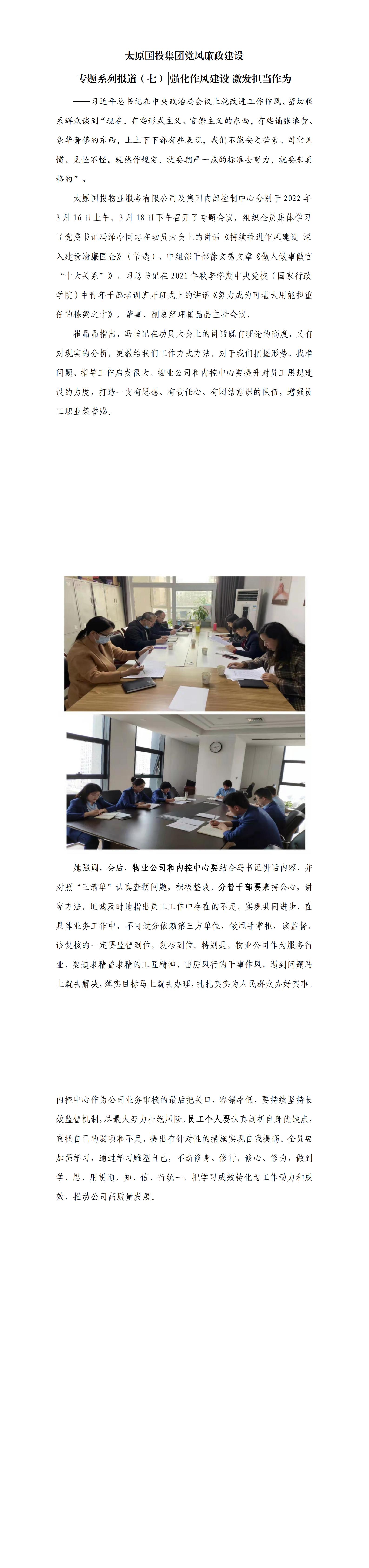 太原國投集團(tuán)黨風(fēng)廉政建設(shè)專題系列報(bào)道(七)強(qiáng)化作風(fēng)建設(shè) 激發(fā)擔(dān)當(dāng)作為