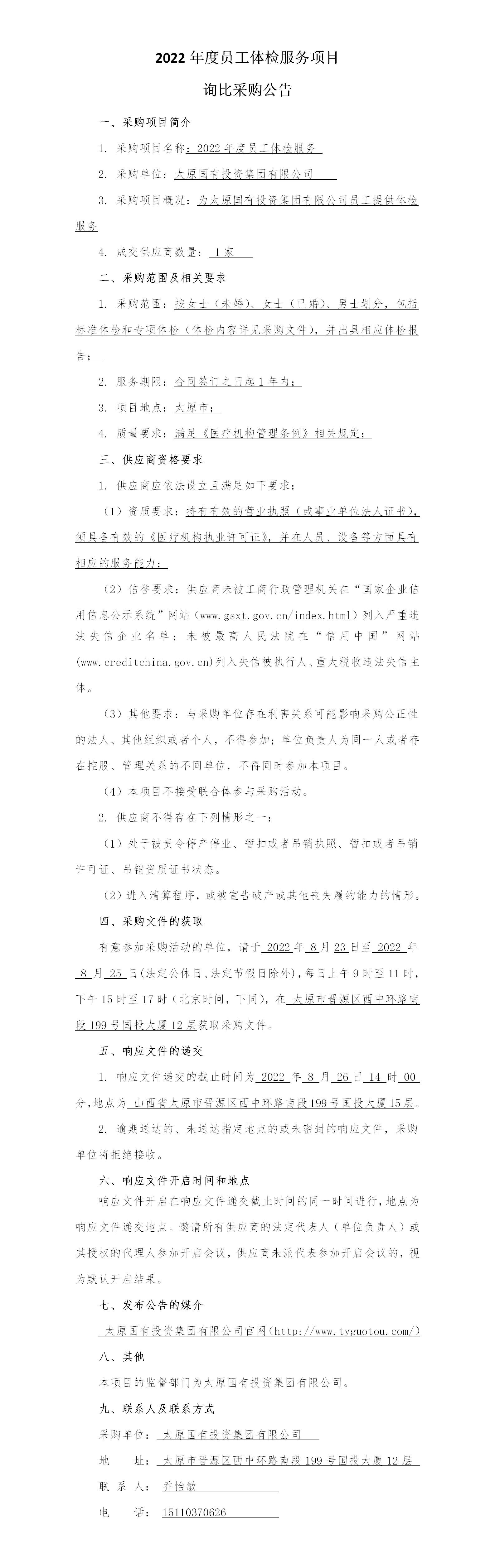 2022年度員工體檢服務(wù)項目詢比采購公告