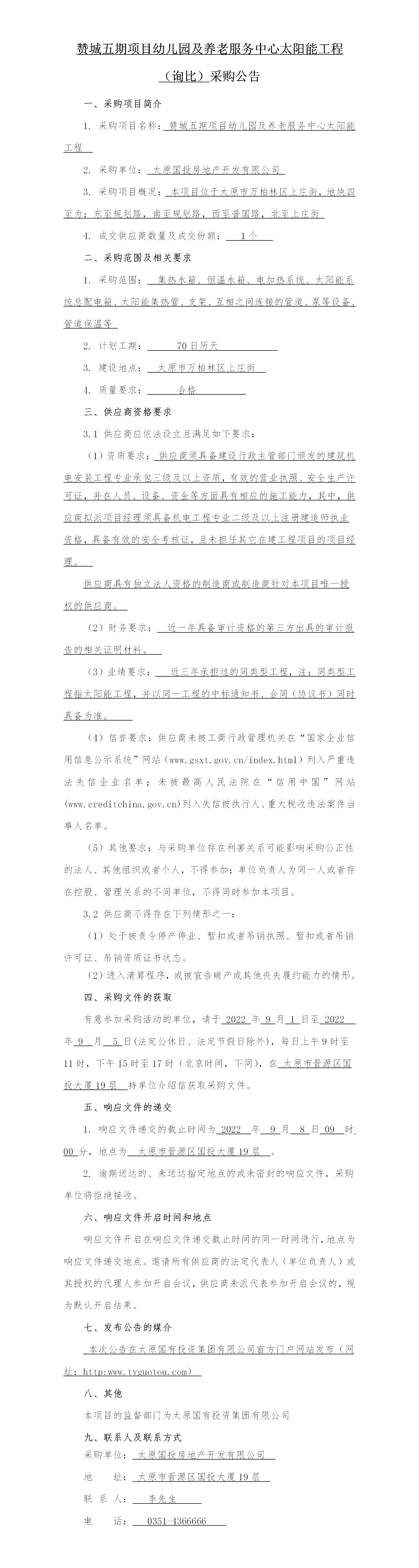 贊城五期項(xiàng)目幼兒園及養(yǎng)老服務(wù)中心太陽(yáng)能工程詢比采購(gòu)公告
