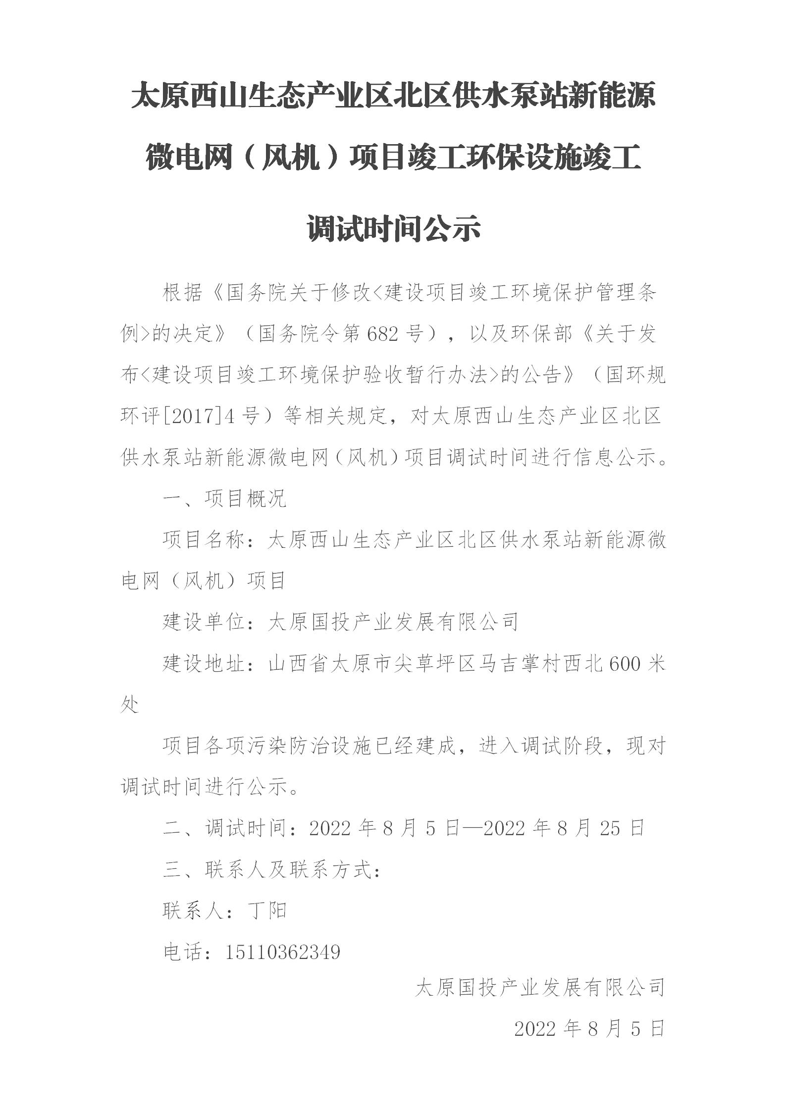 太原西山生態(tài)產(chǎn)業(yè)區(qū)北區(qū)供水泵站新能源微電網(wǎng)(風機)項目調(diào)試公示