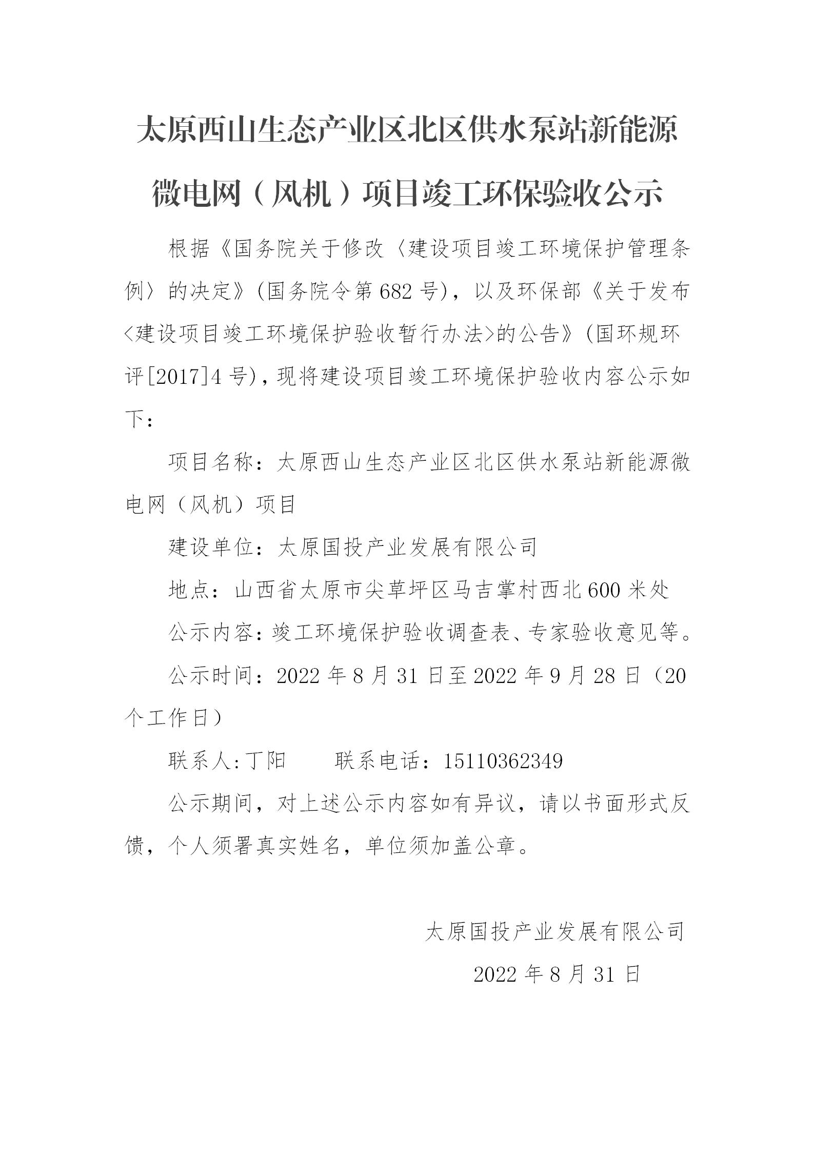 太原西山生態(tài)產(chǎn)業(yè)區(qū)北區(qū)供水泵站新能源微電網(wǎng)(風(fēng)機(jī))項(xiàng)目竣工環(huán)保驗(yàn)收公示
