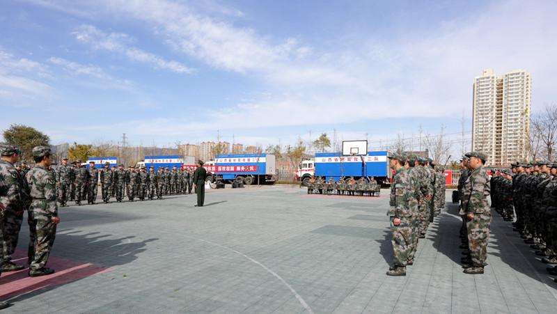 上午8時,國投民兵應(yīng)急連全體官兵在集團列隊集合,整裝待發(fā),連指導(dǎo)員馮澤亭同志做了動員講話。8時20分,全體官兵統(tǒng)一乘車前往萬柏林區(qū)人武部,開始了為期一天的“地震救援演練”。