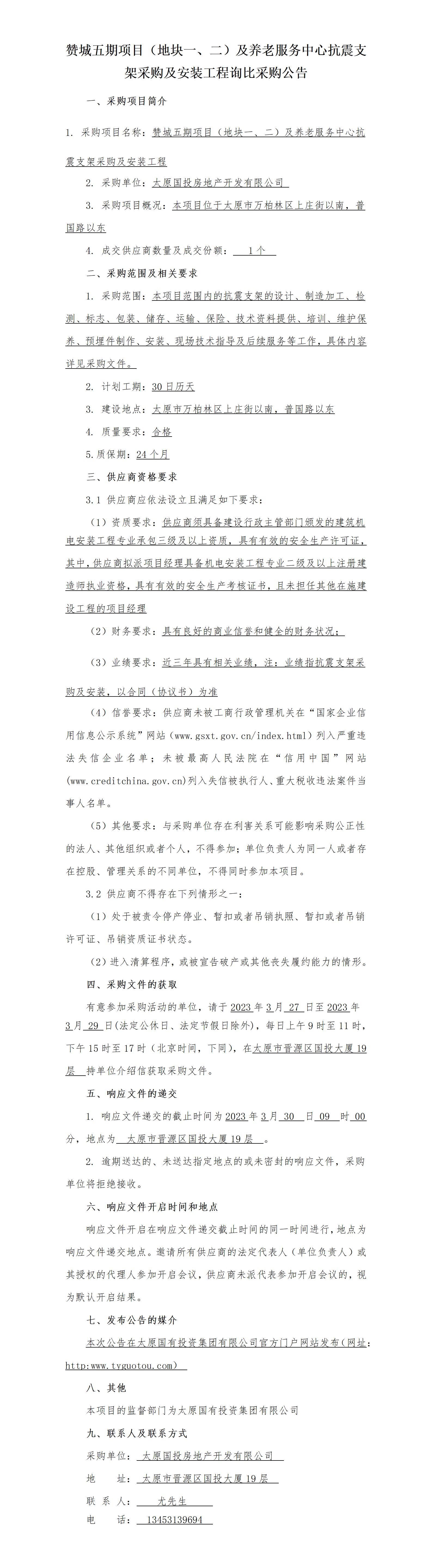 贊城五期項目(地塊一、二)及養(yǎng)老服務(wù)中心抗震支架采購及安裝工程詢比采購公告