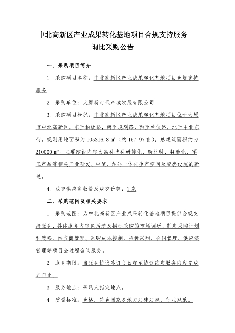中北高新區(qū)產(chǎn)業(yè)成果轉(zhuǎn)化基地項目合規(guī)支持服務(wù)詢比采購公告