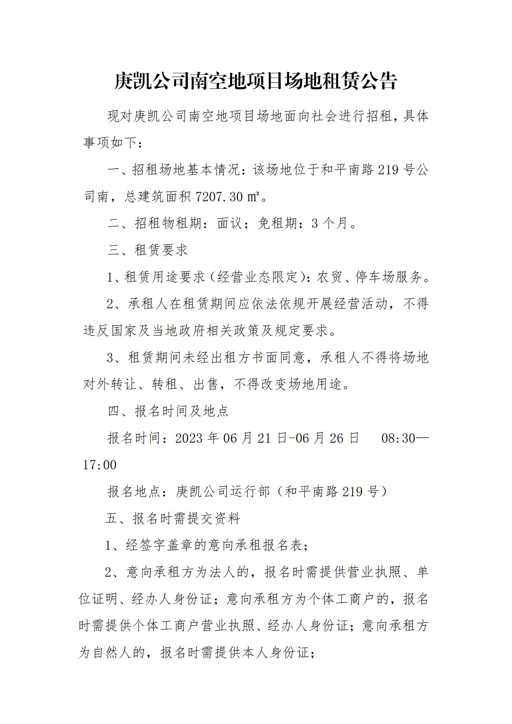 庚凱公司南空地項目場地租賃公告