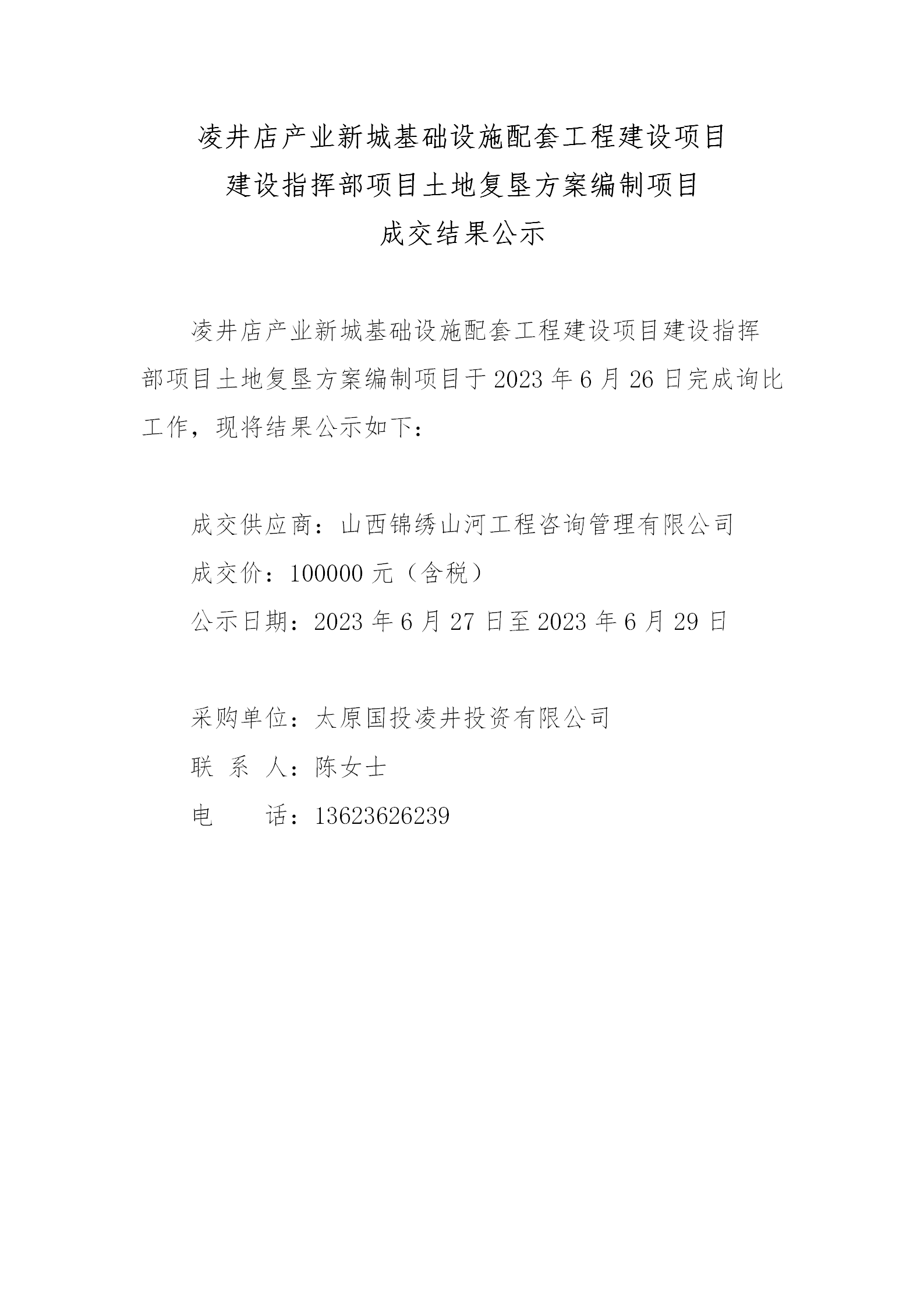凌井店產業(yè)新城基礎設施配套工程建設項目建設指揮部項目土地復墾方案編制項目成交結果公示
