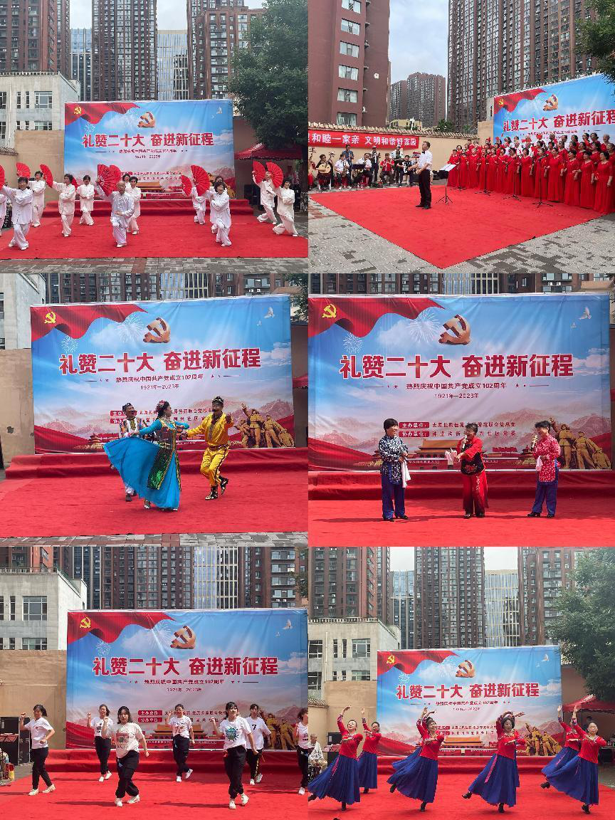 活動(dòng)現(xiàn)場(chǎng)醒目的慶祝標(biāo)識(shí),表達(dá)著對(duì)中國(guó)共產(chǎn)黨成立102周年的喜慶祝福。伴隨著熟悉的旋律,全場(chǎng)起立共唱《國(guó)歌》。文藝演出通過舞蹈、獨(dú)唱、大合唱、詩(shī)朗誦、戲曲等多種形式禮贊偉大的中國(guó)共產(chǎn)黨帶領(lǐng)中國(guó)人民所取得的豐功偉績(jī)。