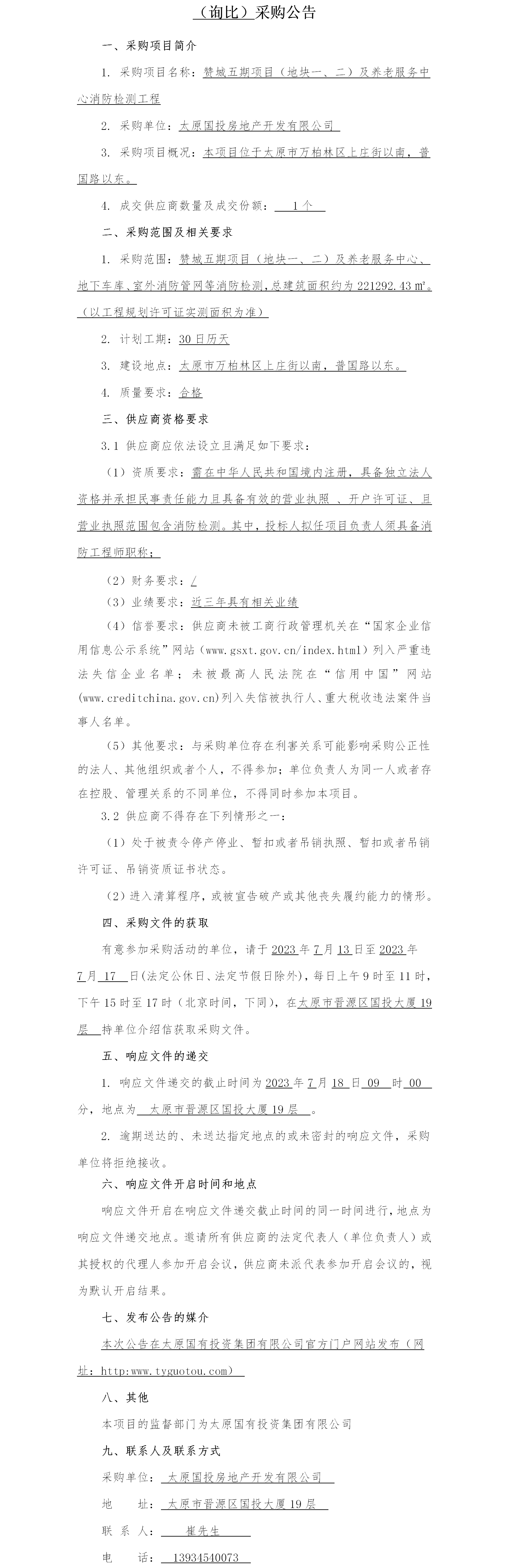 贊城五期項目(地塊一、二)及養(yǎng)老服務中心消防檢測工程(詢比)采購公告