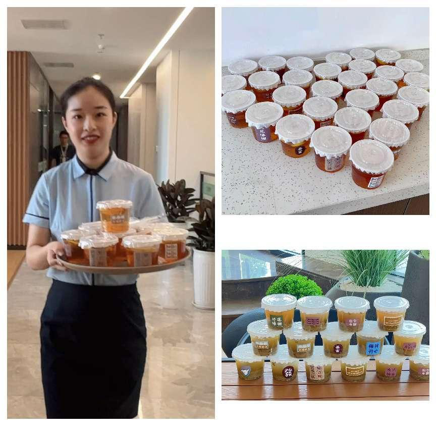 購買食材、準(zhǔn)備鍋具、熬制、分裝、貼標(biāo),為愛喝冰的顧客們準(zhǔn)備了冰塊,過程雖不繁雜,但每一杯都用心制作,每一杯夏飲都飽含她們濃濃的祝福與服務(wù)熱情,送夏飲現(xiàn)場,收獲的一聲聲“謝謝”,就是物業(yè)人工作的最大動(dòng)力。