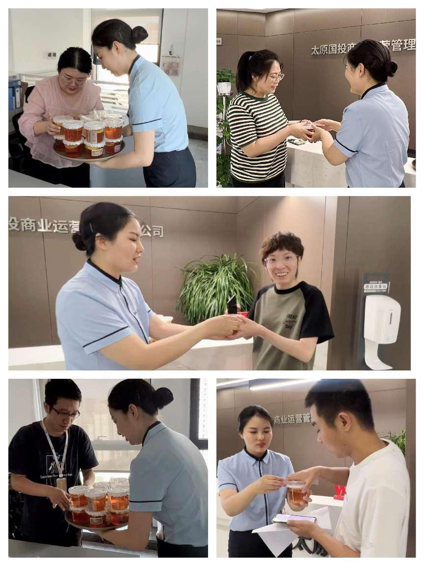 連日的高溫,驕陽似火,來一杯酸甜可口的冰鎮(zhèn)檸檬紅茶,不僅可以健脾開胃,更能提神解暑。為讓廣大客戶及一線員工感受到來自物業(yè)的夏日關(guān)懷,8月8日下午,太原國投物業(yè)國投大廈項(xiàng)目客戶服務(wù)人員將自制的夏飲茶,送到樓層辦公人員及一線員工手中,為他們送去酷暑中的一絲清涼。