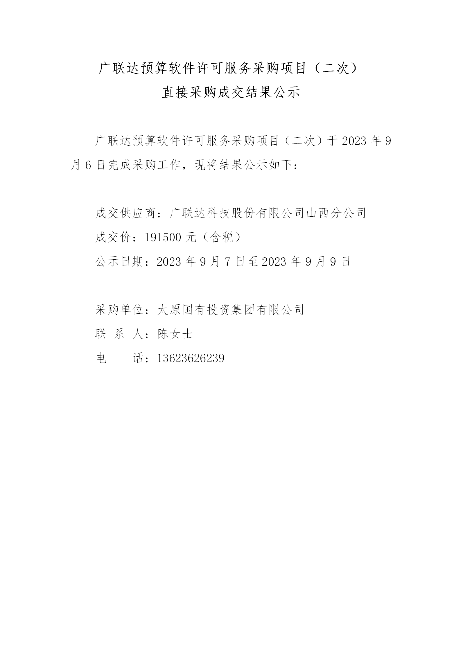 廣聯(lián)達(dá)預(yù)算軟件許可服務(wù)采購項(xiàng)目(二次)直接采購成交結(jié)果公示