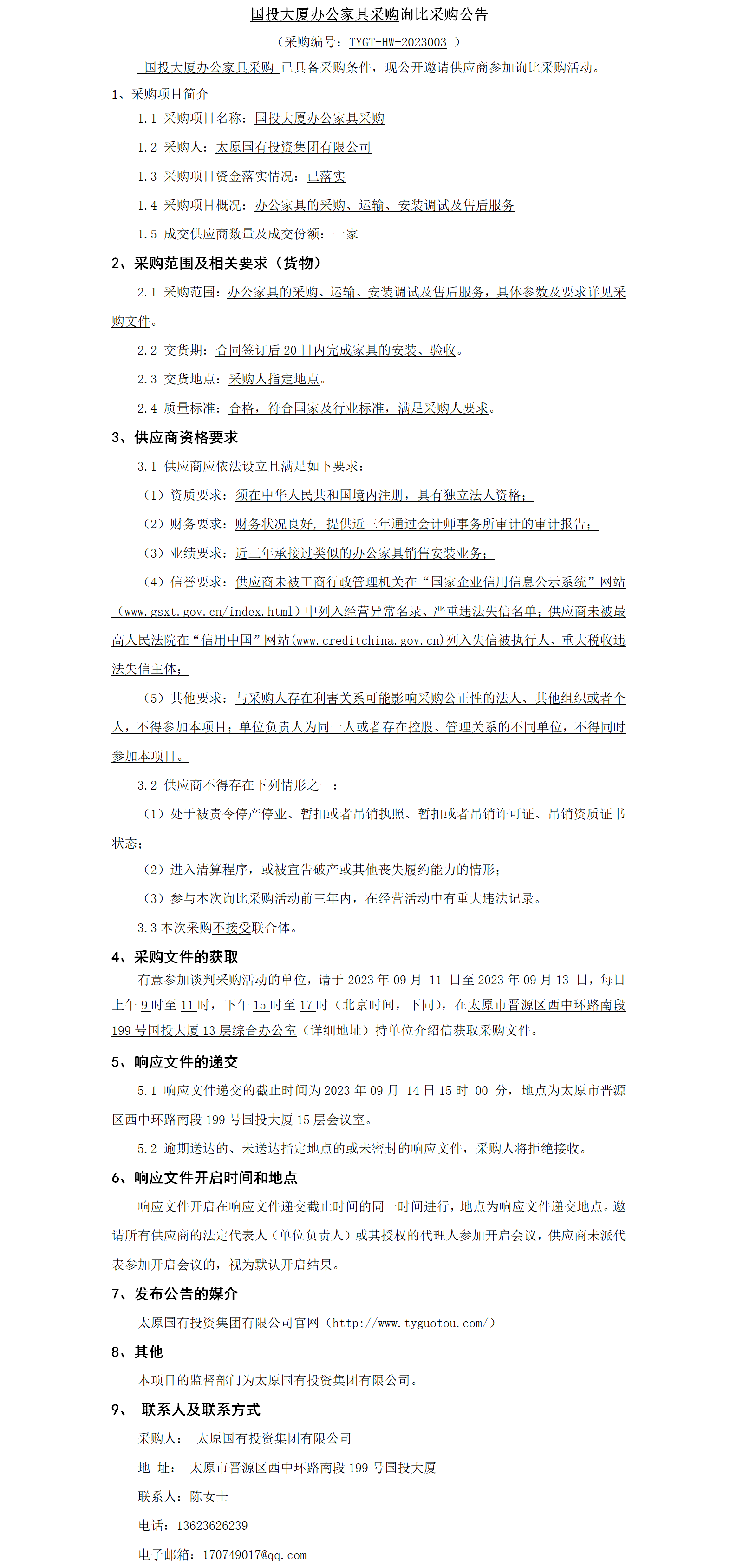 國投大廈辦公家具采購詢比采購公告