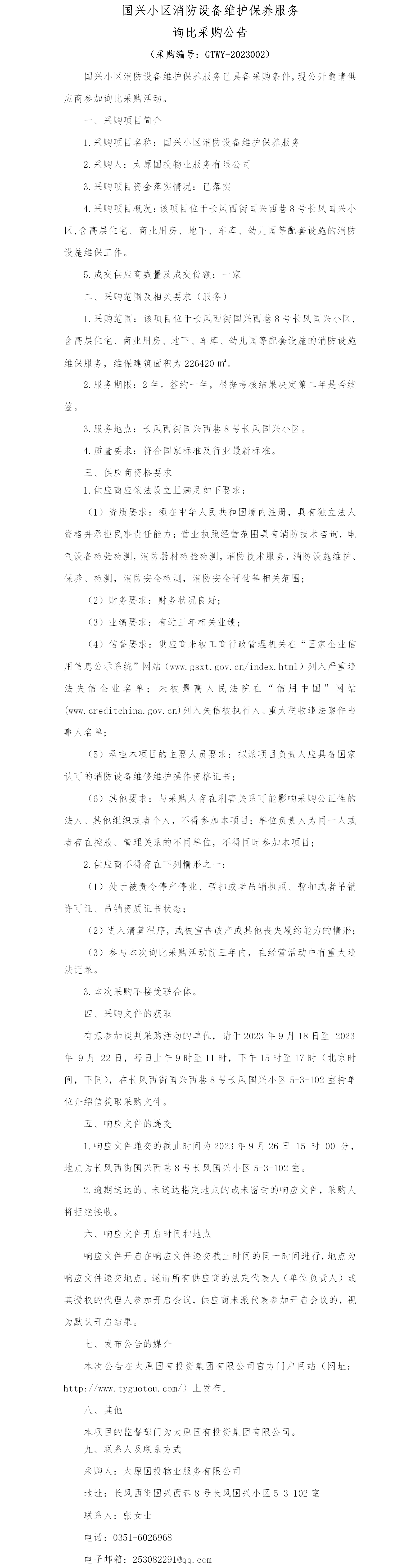 國(guó)興小區(qū)消防設(shè)備維護(hù)保養(yǎng)服務(wù)詢比采購(gòu)公告