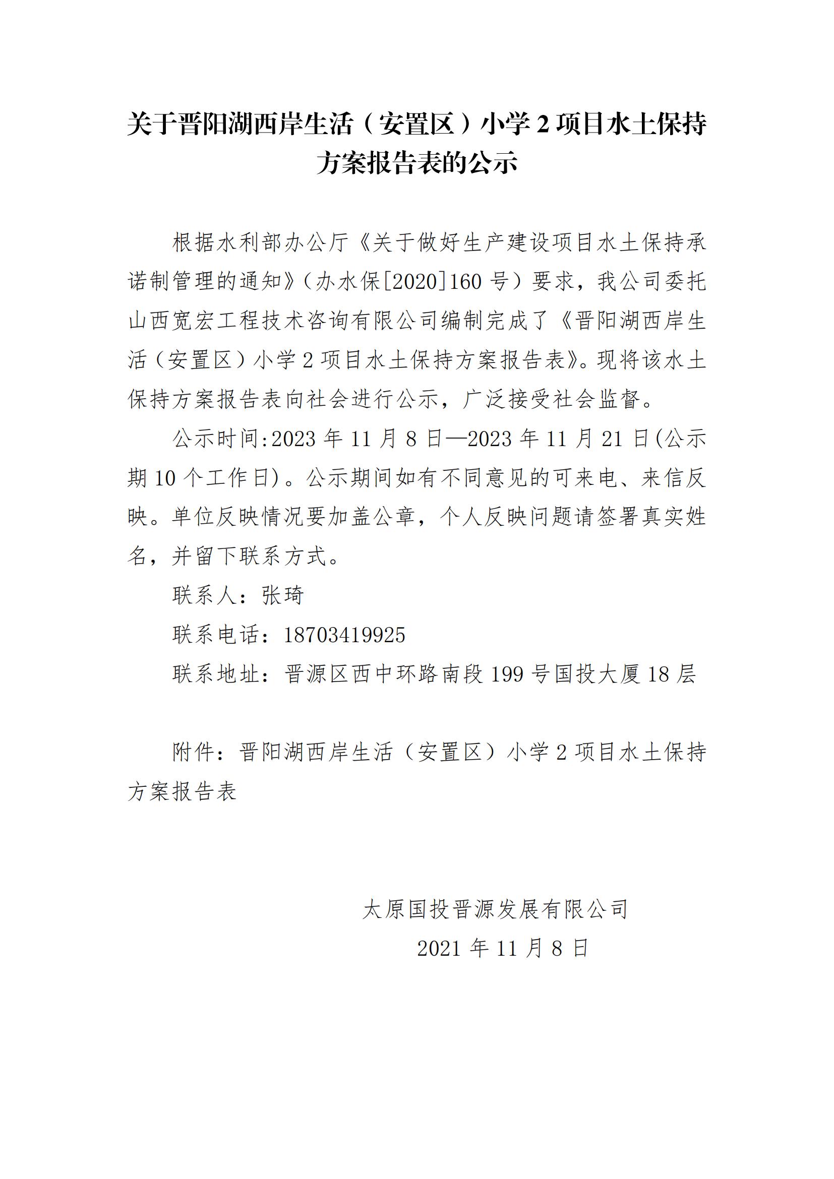關(guān)于晉陽湖西岸生活(安置區(qū))小學(xué)2項目水土保持方案報告表的公示