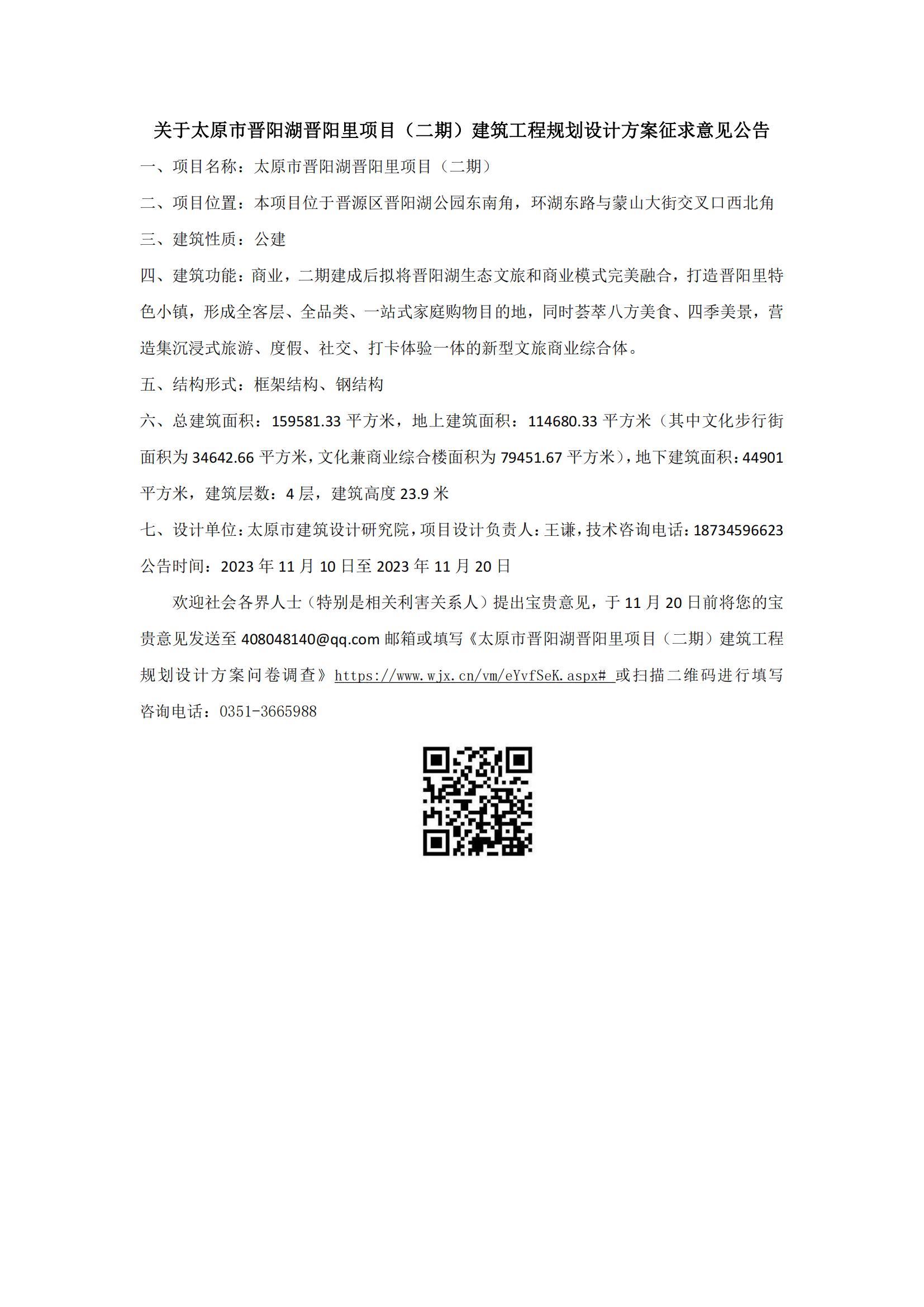 關于太原市晉陽湖晉陽里項目(二期)建筑工程規(guī)劃設計方案征求意見公告