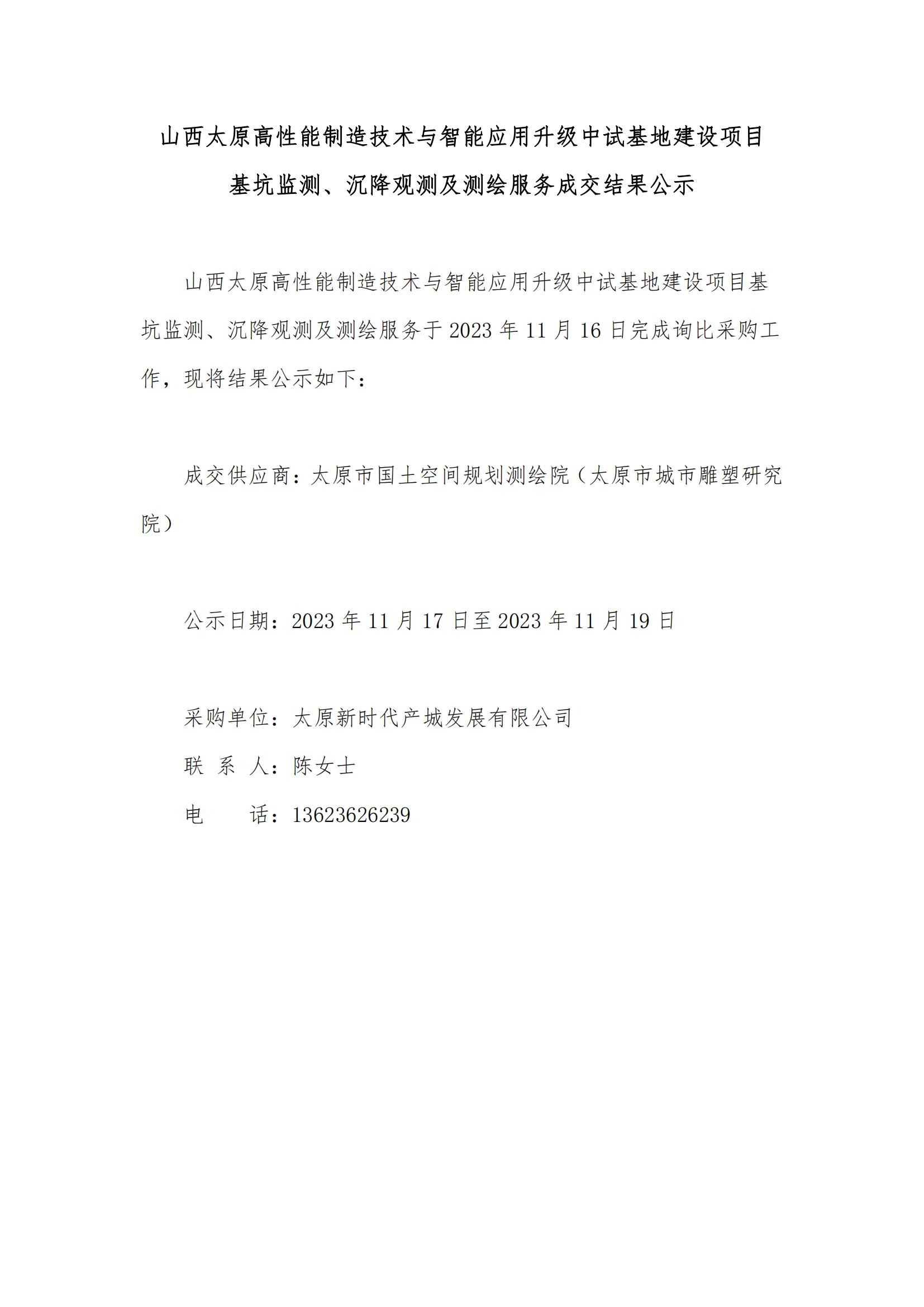 山西太原高性能制造技術(shù)與智能應(yīng)用升級中試基地建設(shè)項(xiàng)目 基坑監(jiān)測、沉降觀測及測繪服務(wù)成交結(jié)果公示