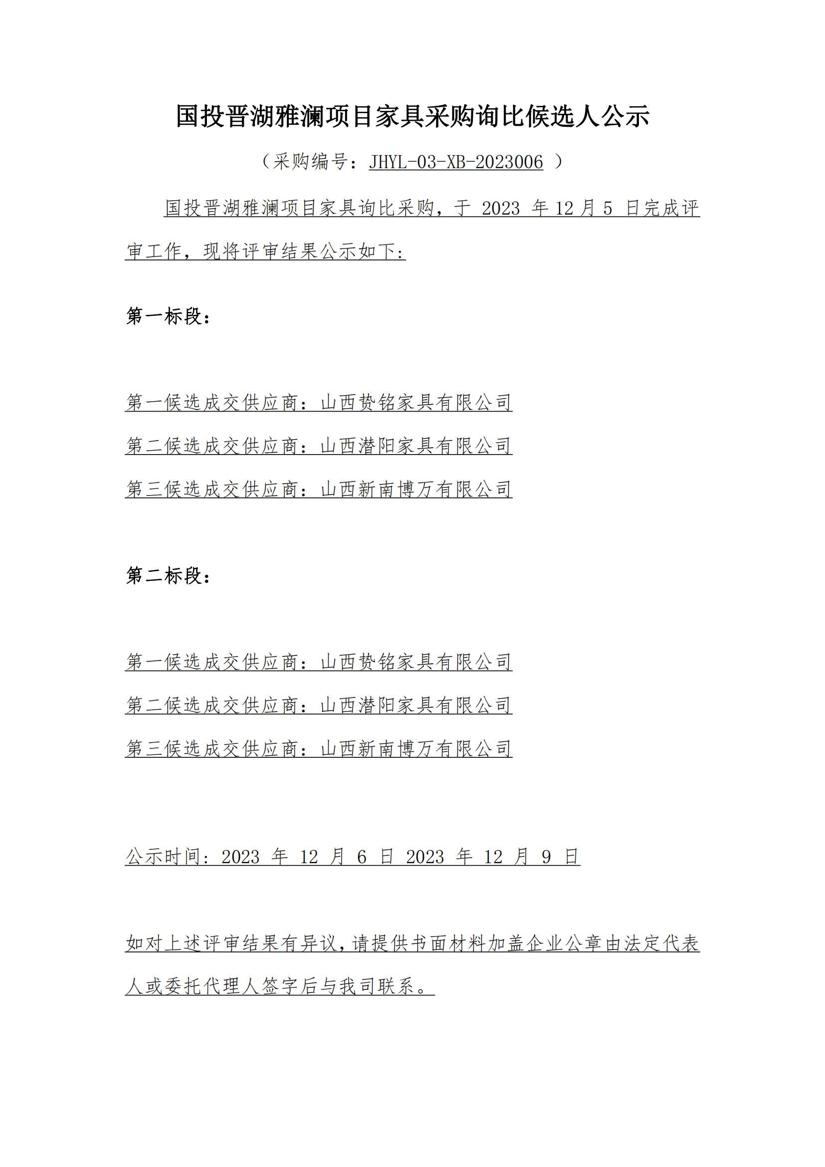 國(guó)投晉湖雅瀾項(xiàng)目家具采購(gòu)詢比候選人公示