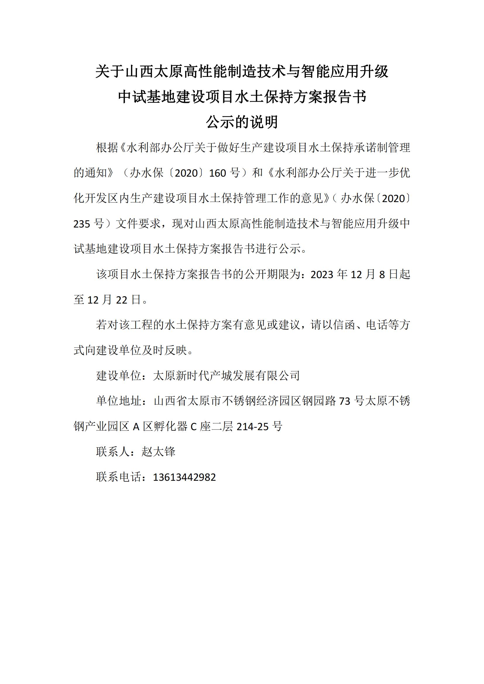 山西太原高性能制造技術(shù)與智能應(yīng)用升級 中試基地建設(shè)項目水土保持方案報告書公示