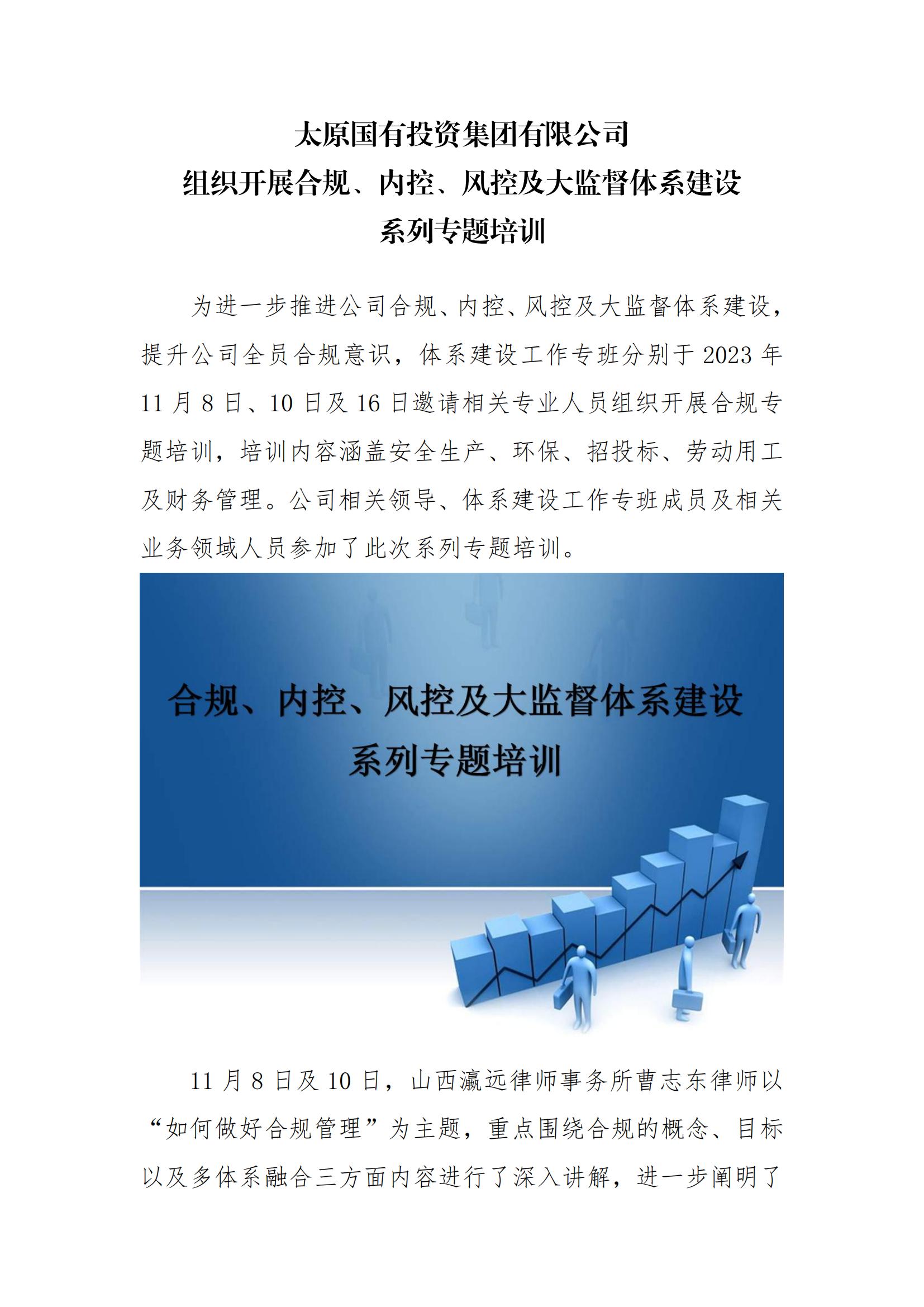 太原國有投資集團有限公司組織開展合規(guī)、內控、風控及大監(jiān)督體系建設系列專題培訓
