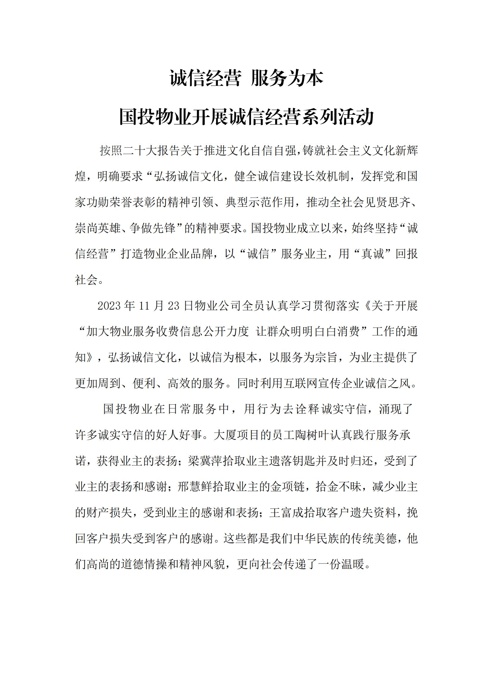 誠信經(jīng)營 服務(wù)為本——國投物業(yè)開展誠信經(jīng)營系列活動