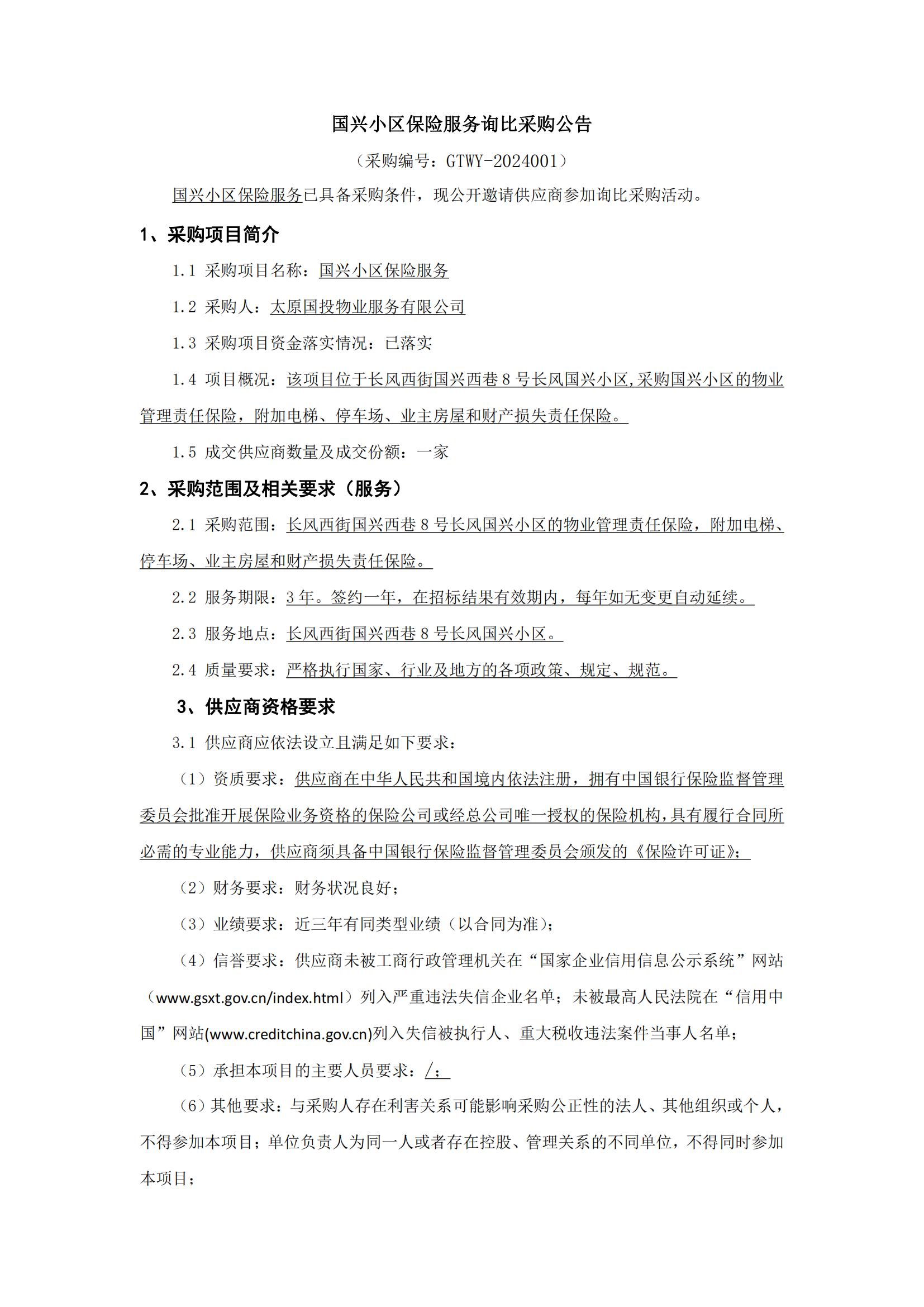 國興小區(qū)保險服務詢比采購公告