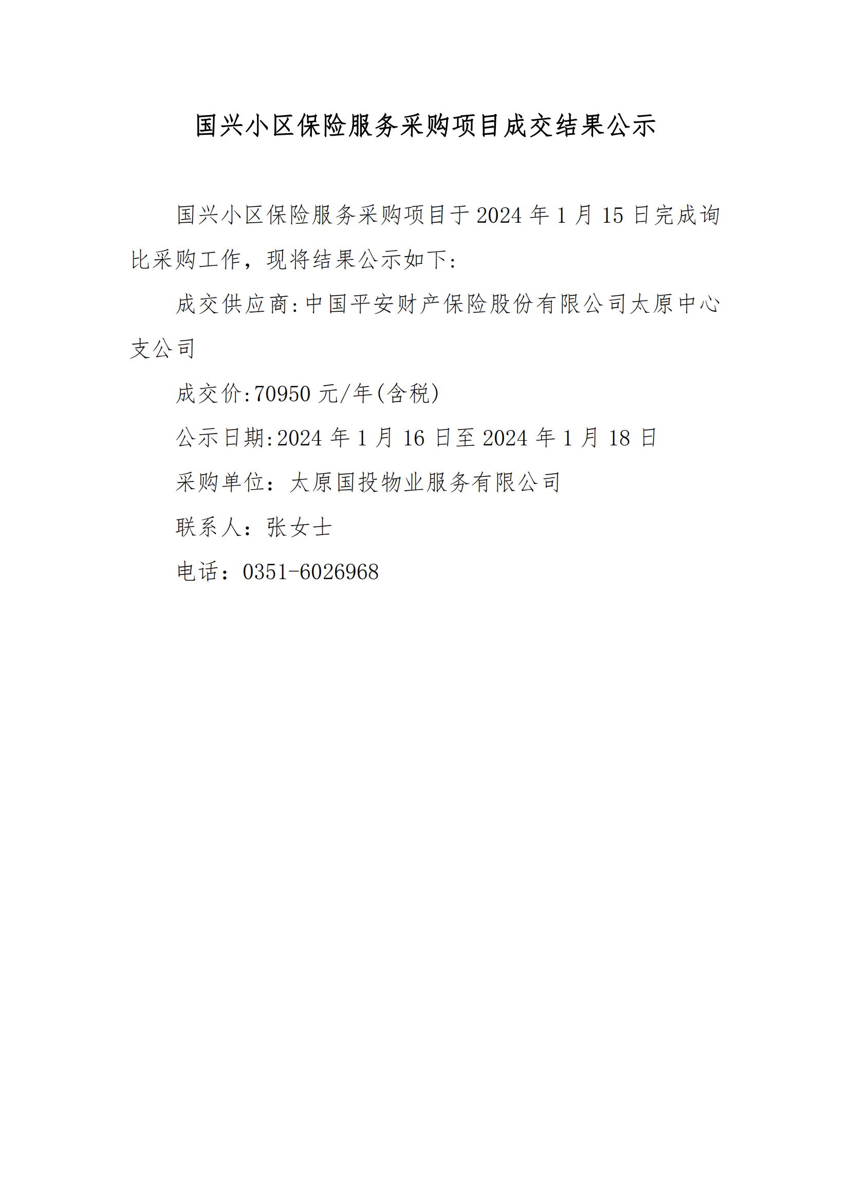 國(guó)興小區(qū)保險(xiǎn)服務(wù)采購(gòu)項(xiàng)目成交結(jié)果公示