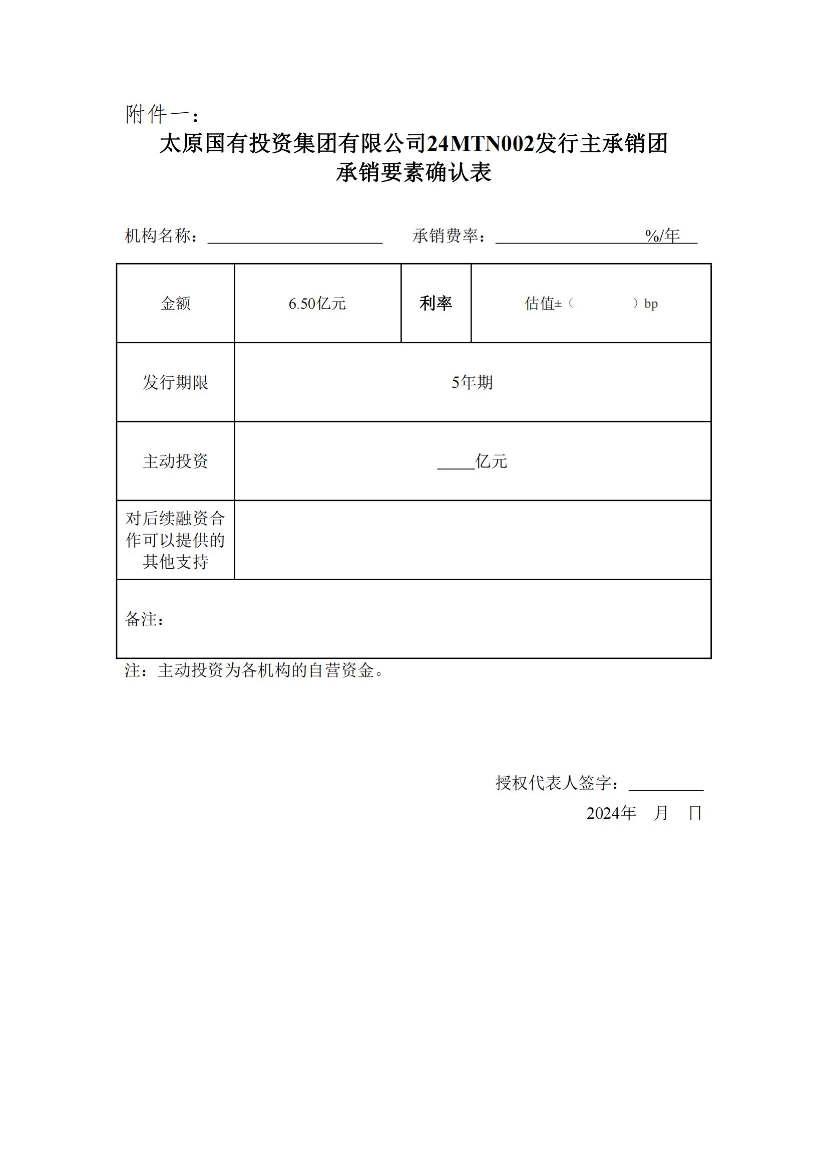 太原國有投資集團有限公司2024年第二期中期票據(jù)主承銷商擇選相關(guān)事項的公告