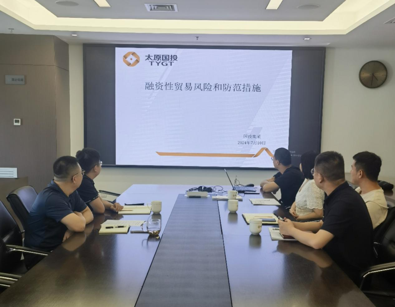 按照集團(tuán)黨紀(jì)學(xué)習(xí)教育精神,結(jié)合集團(tuán)戰(zhàn)略發(fā)展、融資需求及太原國投建筑材料集采有限公司(以下簡稱“集采公司”)業(yè)務(wù)實際,2024年7月15日下午,集采公司組織全體職工開展了融資性貿(mào)易相關(guān)內(nèi)容的專題學(xué)習(xí),集團(tuán)金融事業(yè)中心副主任馮驍參加了會議。