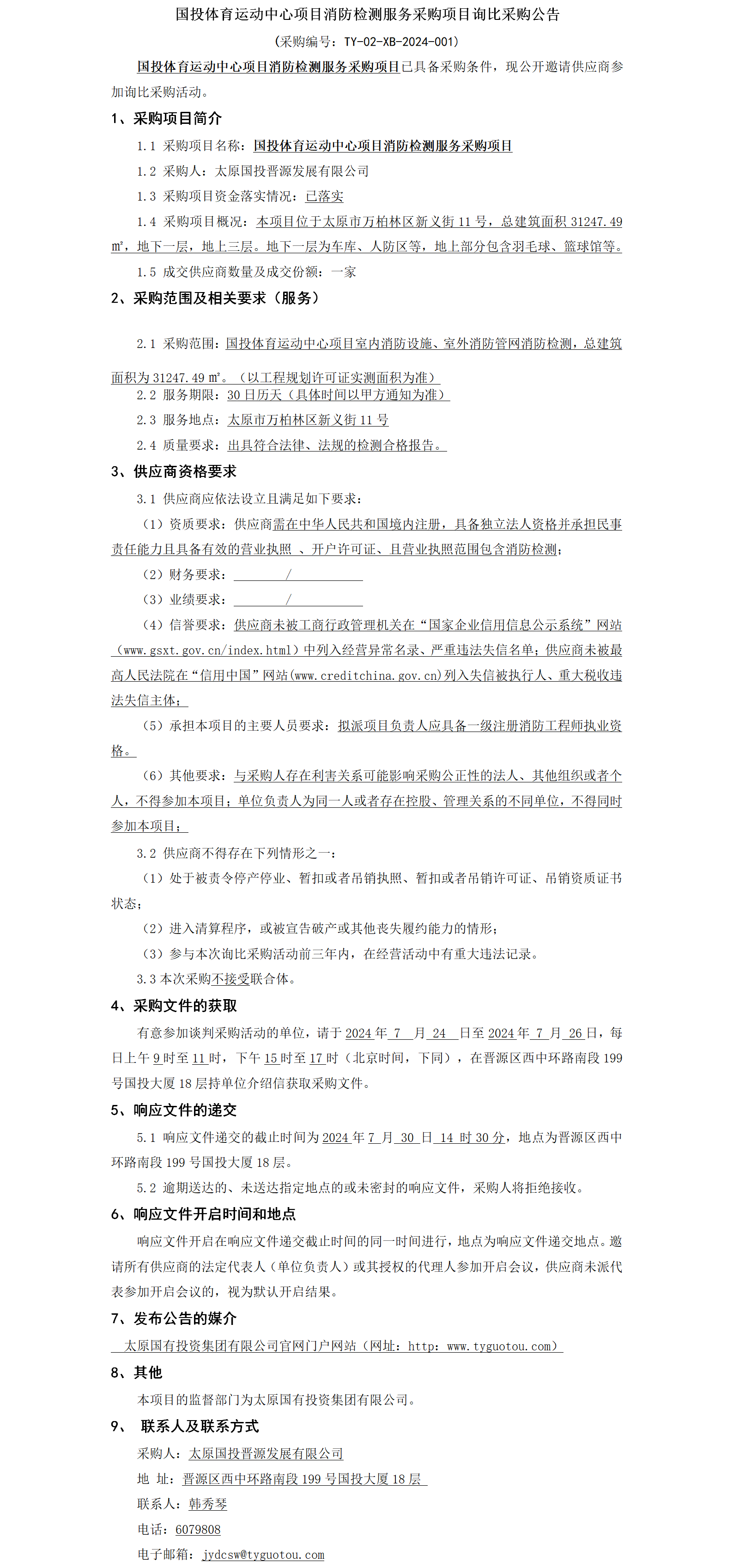 國投體育運動中心項目消防檢測服務(wù)采購項目詢比采購公告