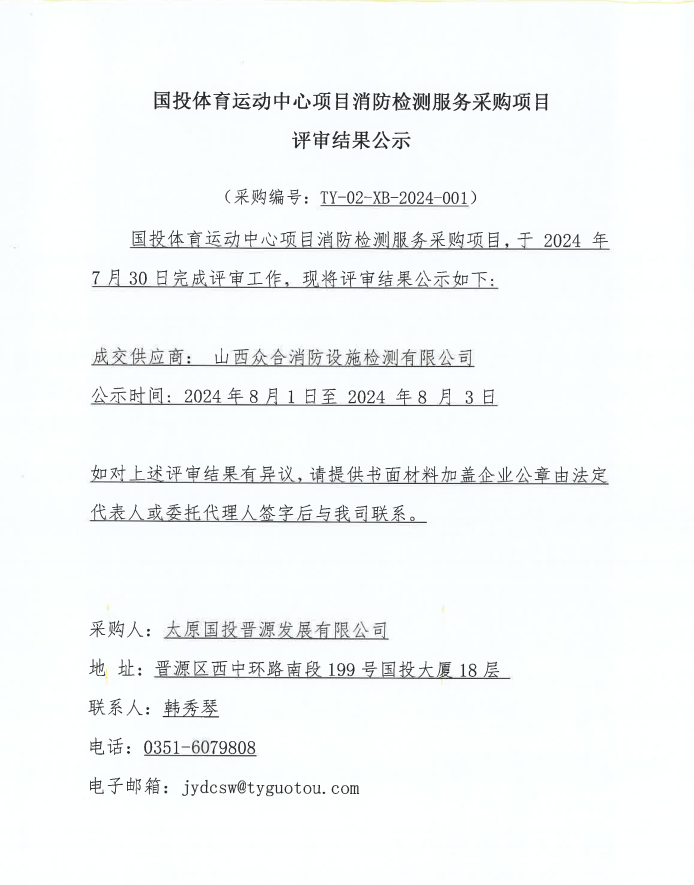 國投體育運(yùn)動(dòng)中心項(xiàng)目消防檢測服務(wù)采購項(xiàng)目評(píng)審結(jié)果公示