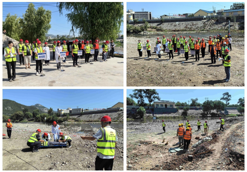 本次演練過(guò)程是模擬由于多日連續(xù)降雨,河道水位已超出預(yù)警值,汾河二庫(kù)即將開(kāi)閘泄洪,需要立即組織人員、機(jī)械進(jìn)行疏散。在疏散過(guò)程中發(fā)現(xiàn)被困人員、物資,項(xiàng)目應(yīng)急指揮部迅速啟動(dòng)應(yīng)急預(yù)案,各應(yīng)急小組迅速響應(yīng),按照預(yù)案分工,有序開(kāi)展預(yù)警發(fā)布、人員疏散、物資調(diào)配、現(xiàn)場(chǎng)搶險(xiǎn)等一系列應(yīng)急處置工作。
