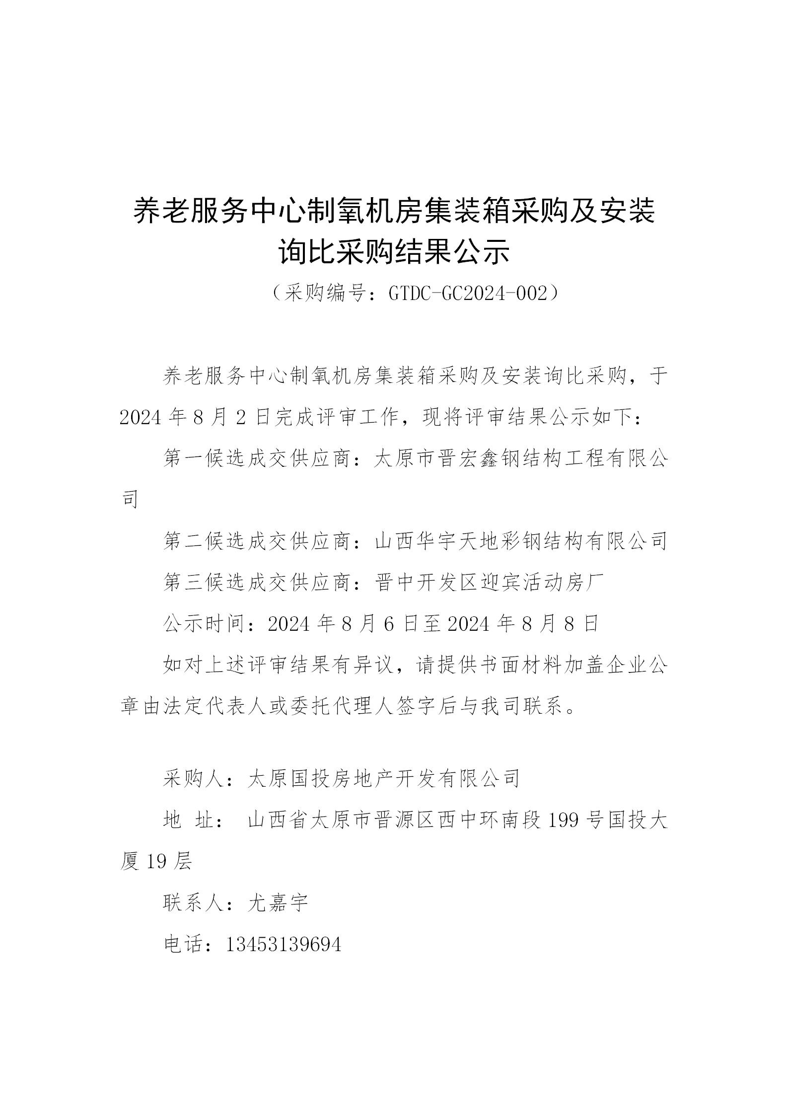 養(yǎng)老服務(wù)中心制氧機(jī)房集裝箱采購(gòu)及安裝詢比采購(gòu)結(jié)果公示