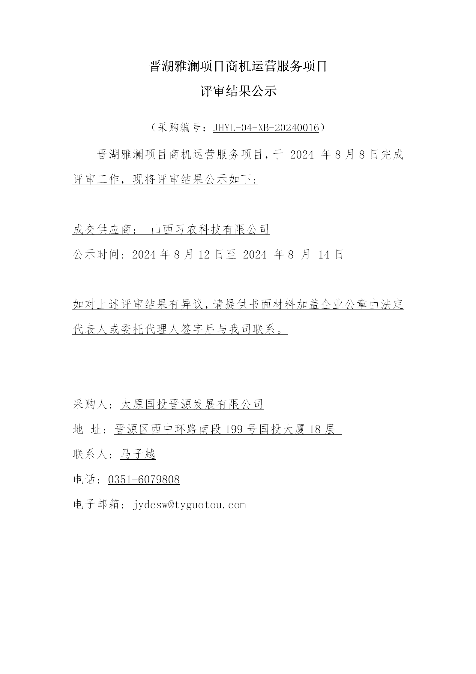 晉湖雅瀾項目商機(jī)運(yùn)營服務(wù)項目評審結(jié)果公示
