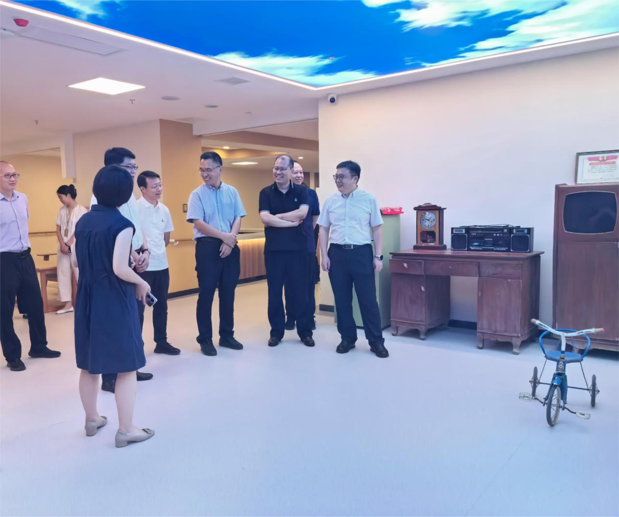 國家開發(fā)銀行領(lǐng)導(dǎo)一行參觀了解機構(gòu)內(nèi)智慧康養(yǎng)展示區(qū)、診療區(qū)、護(hù)理專區(qū)、康養(yǎng)專區(qū)及認(rèn)知癥專區(qū)的設(shè)施功能,特別是六層認(rèn)知癥專區(qū)的設(shè)計理念以及未來將開展的“物理環(huán)境療法”“色彩療法”等亮點獲得了領(lǐng)導(dǎo)們的一致好評和期待。