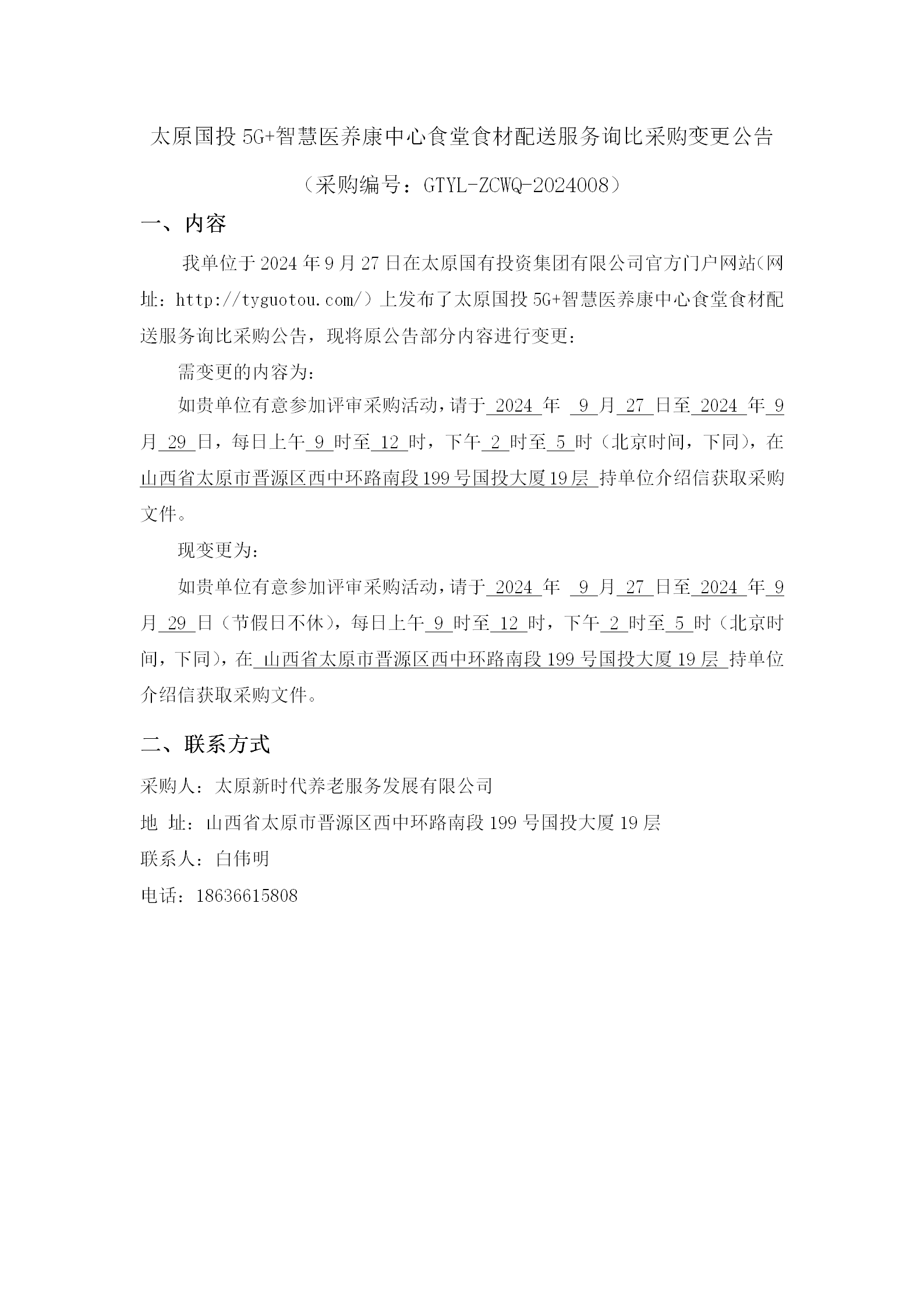 太原國投5G+智慧醫(yī)養(yǎng)康中心食堂食材配送服務(wù)詢比采購變更公告
