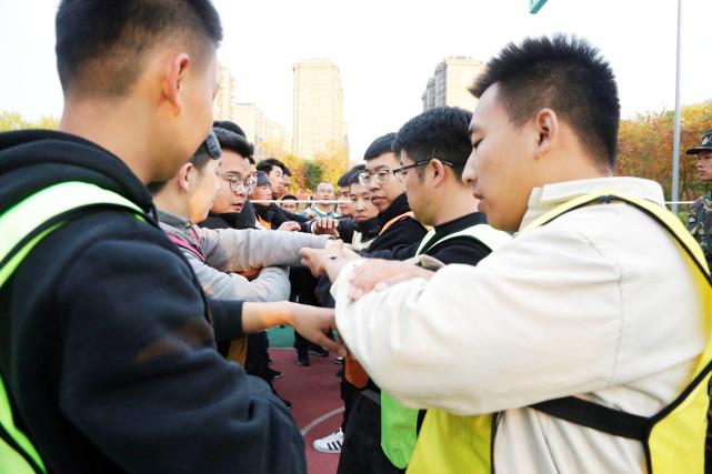 秋日的晉陽湖,層林盡染,一片金黃,一天的拓展活動在集團(tuán)副董事長文劍鋒熱情洋溢的致辭中拉開帷幕,分組、熱身,沐浴著朝陽大家來到體健公園。